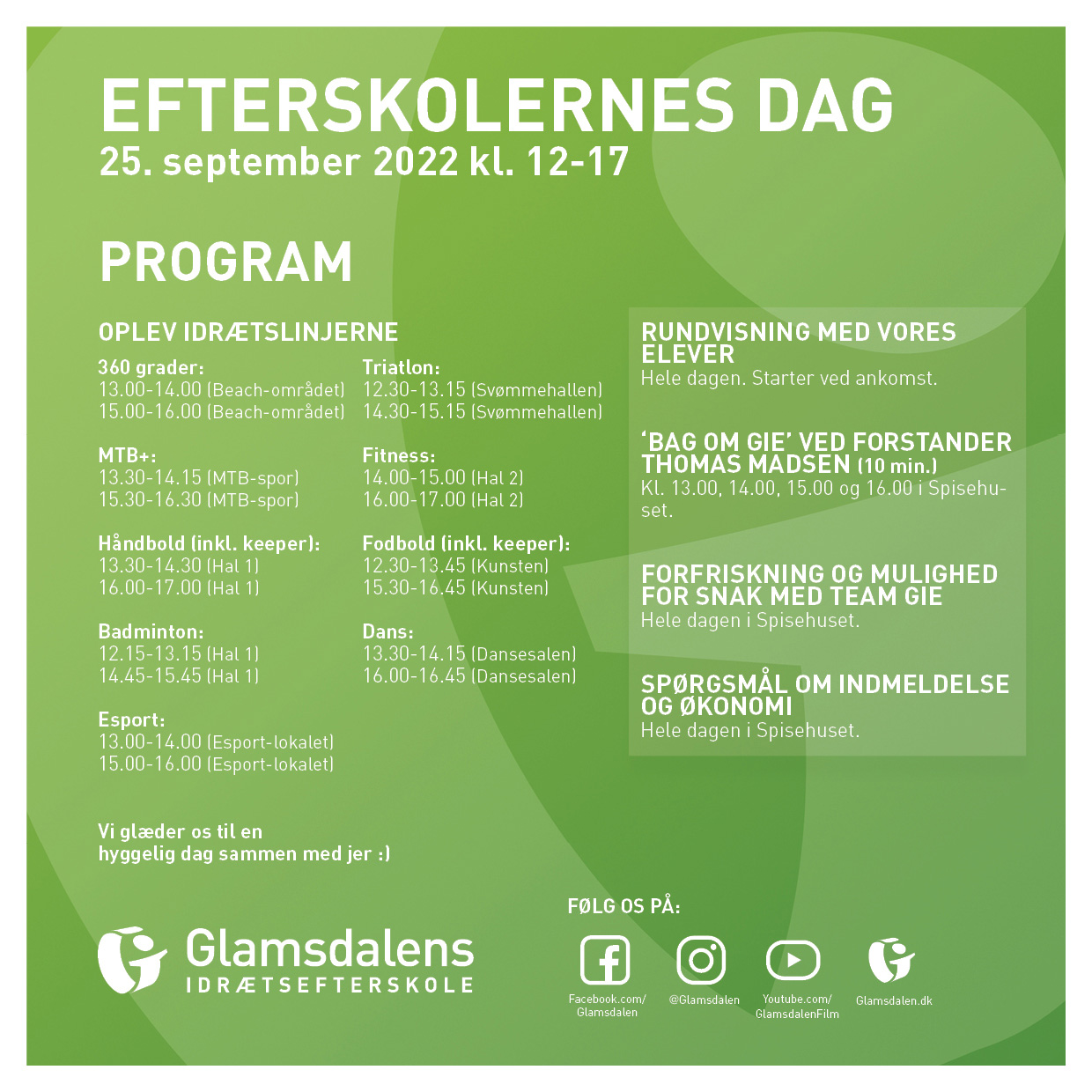 Søndag d. 25. september 2022 fra 12-17 åbner vi dørene til den helt store festdag i efterskolekalenderen. Efterskolernes Dag er en oplagt muligt for at besøge en række efterskoler og mærke stemningen.